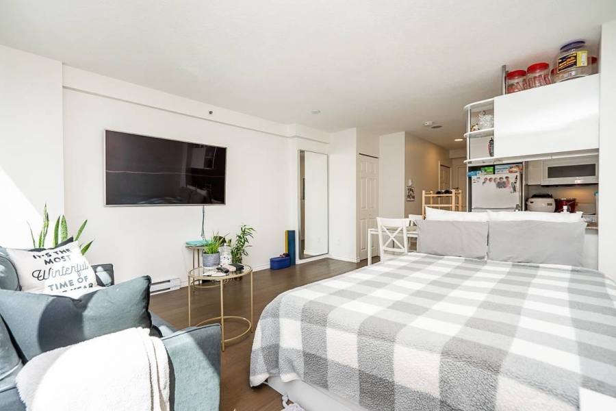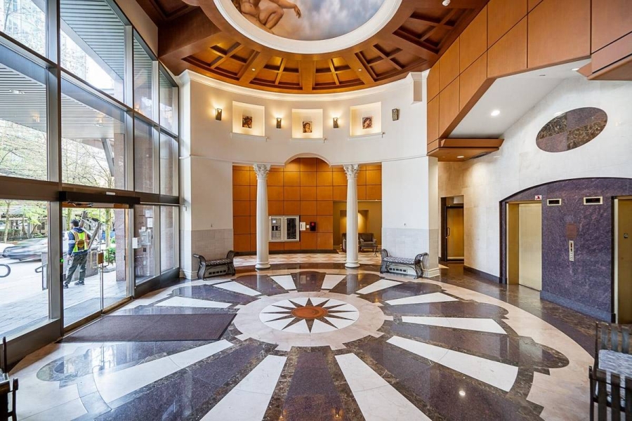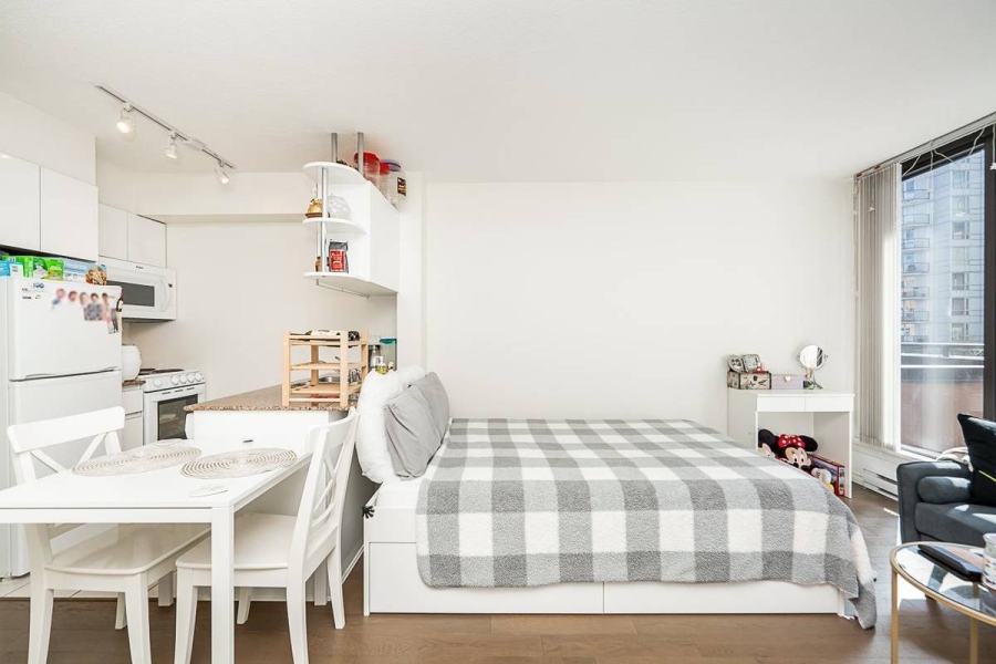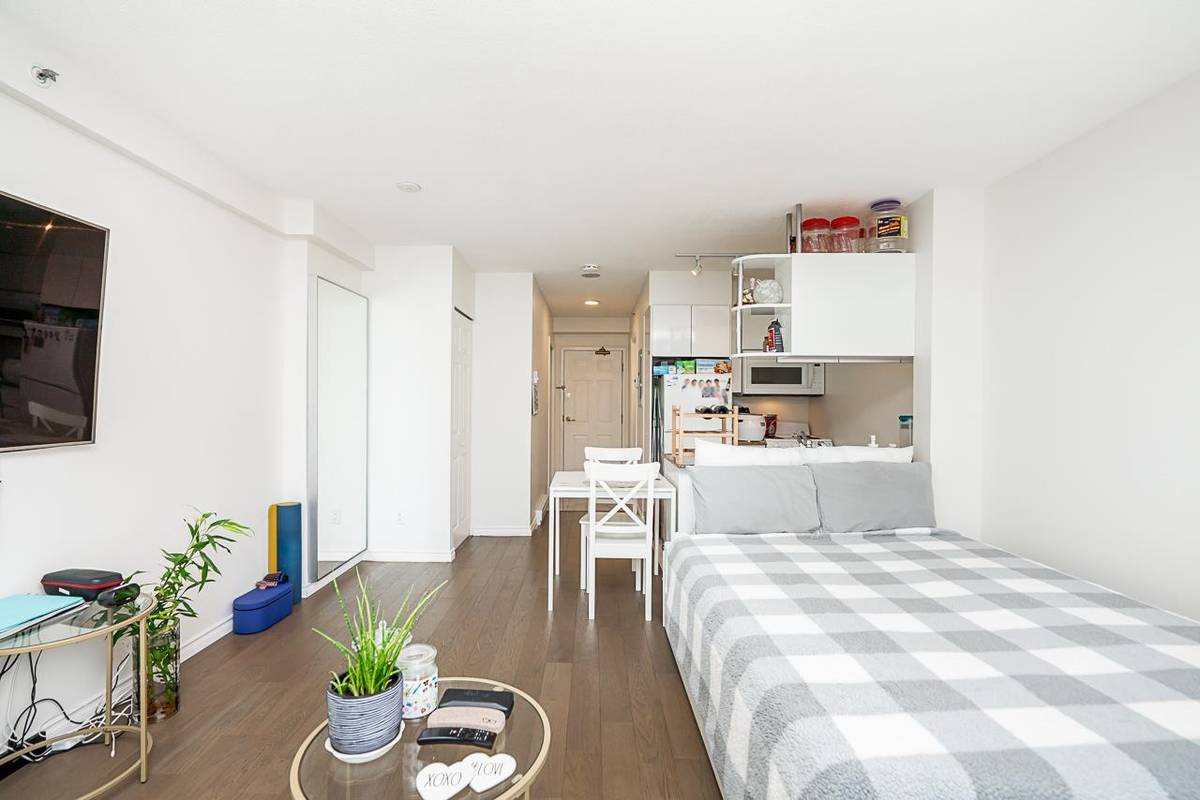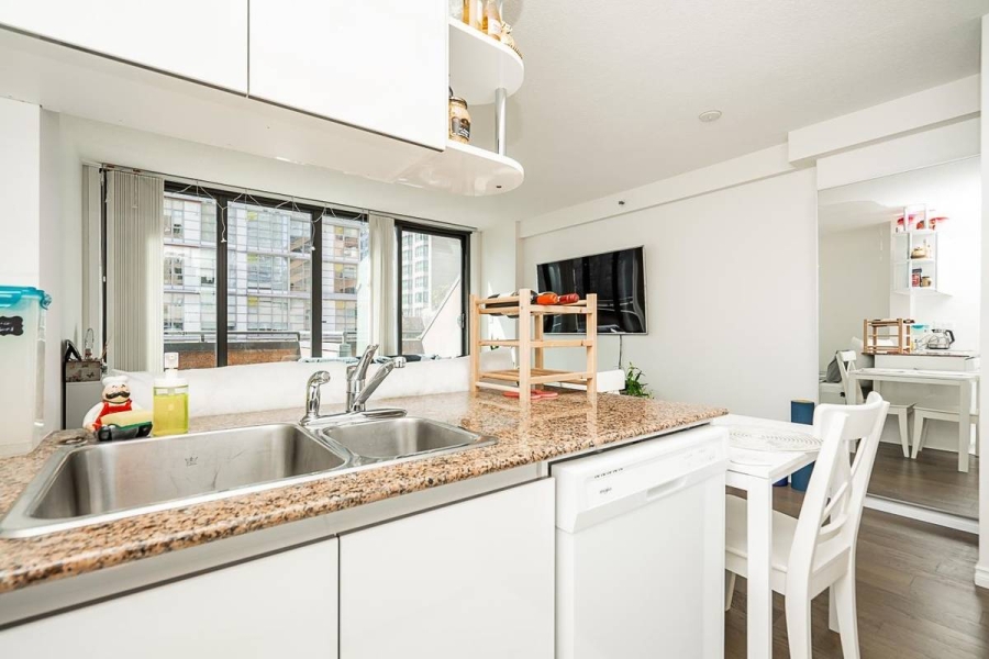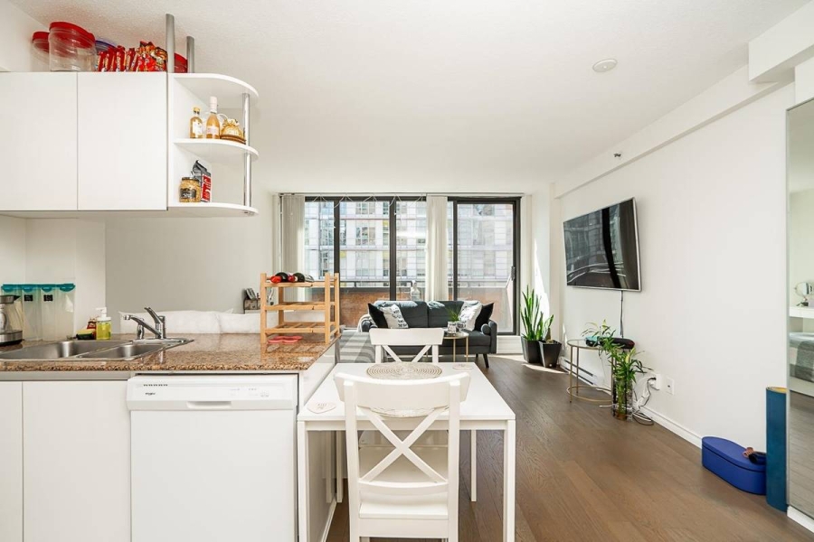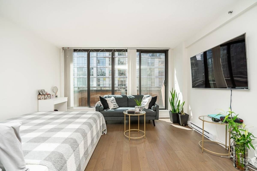 Ideally located at the lively corner of Howe and Davie, this bright south-facing studio combines comfort and convenience in downtown Vancouver. It features a full kitchen and bathroom, new flooring, in-suite laundry, and ample storage with a walk-in closet. Secured parking is included. Enjoy a full suite of amenities at The Genesis, including a fitness center, indoor pool, sauna, hot tub, rooftop terrace, and 24-hour concierge for your convenience and security. Located just steps from the Seawall, Yaletown, Davie Village, and Robson Street, this studio allows you to embrace downtown living at its finest—vibrant, connected, and surrounded by the best of Vancouver.